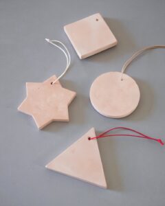 今回のワークショップでは、能登から持参した珪藻土の粉を使って、オリジナルのオーナメントづくりを体験いただけます。