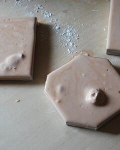 オリジナルの簡易型を作り、水で溶かした珪藻土を流し込む簡単なワークショップなのでお子様もご参加できます。